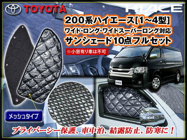 200系 ハイエース [ワイド/1〜4型] 日除け サンシェード【黒メッシュ】完全遮光 車中泊 アウトドア 日よけ crd