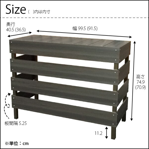 商品詳細 ■サイズ■ W99.5cm×D40.5cm×H74.9cm(側面と前面にそれぞれビス頭が2mm程出ています) 有効内寸 W91.5cm×D36.5cm×H70.9cm ※必ず、室外機のサイズに合うかご確認ください。