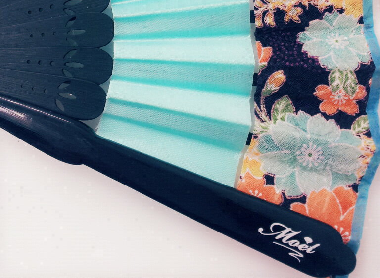 デザイン ・世界初の香水ボトル付き(取り外し可能) ・香水ボトルは蓋の外れにくい特殊加工をしています ・従来、扇子は紙で作られていたのに対し、Moet扇子はサテンやレースといった生地を 重ねて作っている為、高級感と色合いのバランスが華やかさを醸し出します。