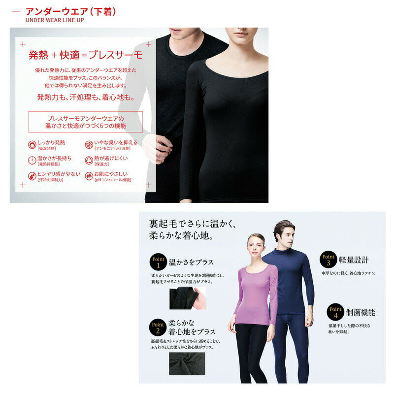 【コンビニ受取対応商品】について※代金引換・日時指定・あす楽・メール便指定時は コンビニ受取ができませんのでご注意ください【生産国】 日本製 【素材】 ポリエステル90%・指定外繊維(ブレスサーモ)10% 【特徴】 ブレスサーモエブリの保温力に、やわらかい着心地をプラス。